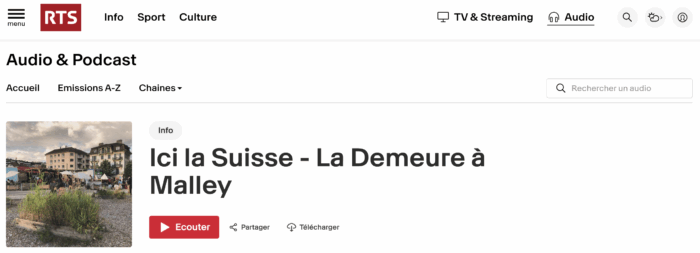 La RTS, « Ici la Suisse-La Demeure à Malley », 15 octobre 2025