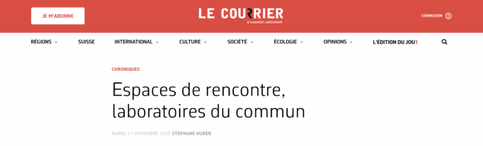 Le Courrier, « Espaces de rencontre, laboratoires du commun », 11 novembre 2025
